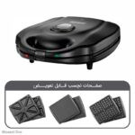 نوع صفحات پخت : صفحه سه گوش, صفحه شیاردار گریل, صفحه وافل ساز